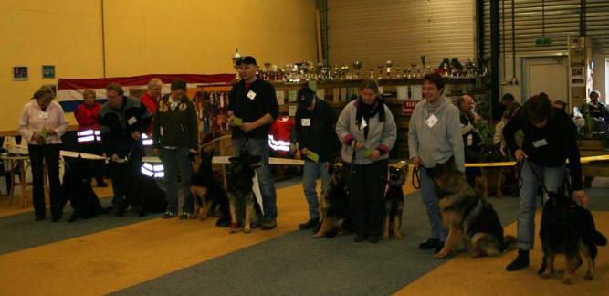 12 maart 2006 Een dagje met elkaar op stap naar de NODHV-show in Schoonebeek. Van het A-Nest waren aanwezig Goedele en Frieda met Luna, Lex met Boy en Marja met haar Angel. Alledrie behaalden ze een Uitmuntend. Luna werd zelfs eerste van haar klasse en daar heeft Goedele heel wat rondjes voor moeten lopen. Zelf had ik Floor bij me en zij kreeg, net zoals haar zus Fly van Karin een goed keurrapport. De topper van de dag was Cliff: Hij werd de beste van de show, ik ben er nog ondersteboven van! De foto's van deze dag zijn gemaakt door Lex en Marja. Klik op de foto om alle foto's te zien.