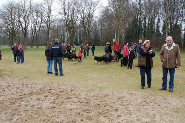 Winterwandeling 20-1-2008 De winterwandeling van 2008 was in de Soesterduinen voor de nakomelingen van de meute en van Karin's kennel. Ik vond het heel leuk dat daar ook alweer nakomelingen van mee liepen. De weergoden waren ons goed gezind en er is tijdens de wandeling geen spat regen gevallen, dat was de afgelopen dagen wel anders. De honden, van volwassen tot pup, hebben zich uitstekend vermaakt en genoten van de (modder) plassen die er waren. Ook dit keer ging de tijd te snel voorbij om uitgebreid met iedereen te kunnen praten. Om een indruk van deze dag te krijgen, klik op onderstaande foto. Paula, Therese, Lex, Linda en Hanny, bedankt voor de foto's en allemaal tot een volgende wandeling!!